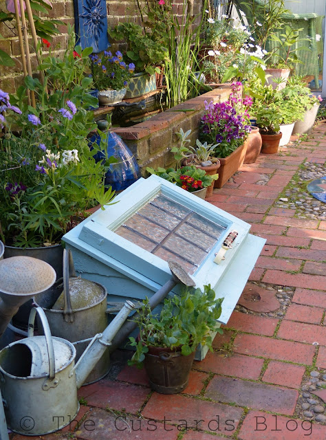 Love the cold frame. Luckily (or unluckily for minimalists) my hubby has more than one window lying around. Another for the to do list. The tea/coffee pots reminded me of a stall I saw recently where the lady drilled holes in stainless steel tea pots and planted them up. I've been looking for nice shaped pots since (no luck yet) but another on the to do list!